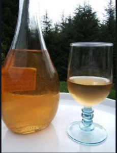 2 kg de pêches très mures, 400 gr de sucre en poudre, 3 litres de bon vin blanc, 1 litre de cognac, un peu de levure de bière